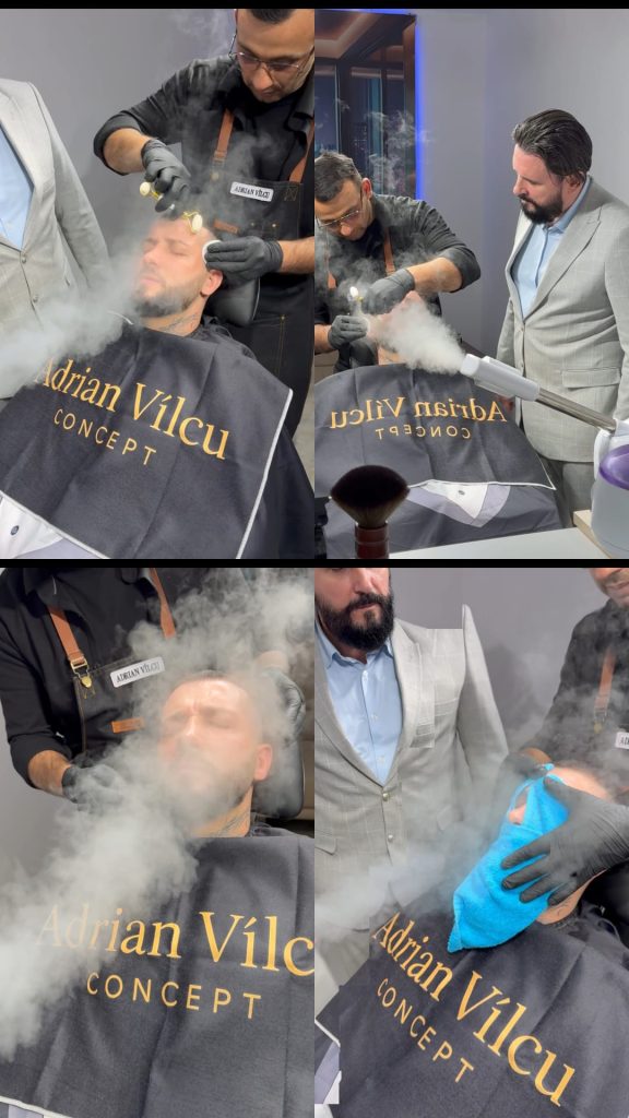 – Bărbierit tradițional cu brici și prosop cu aburi